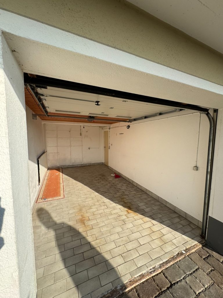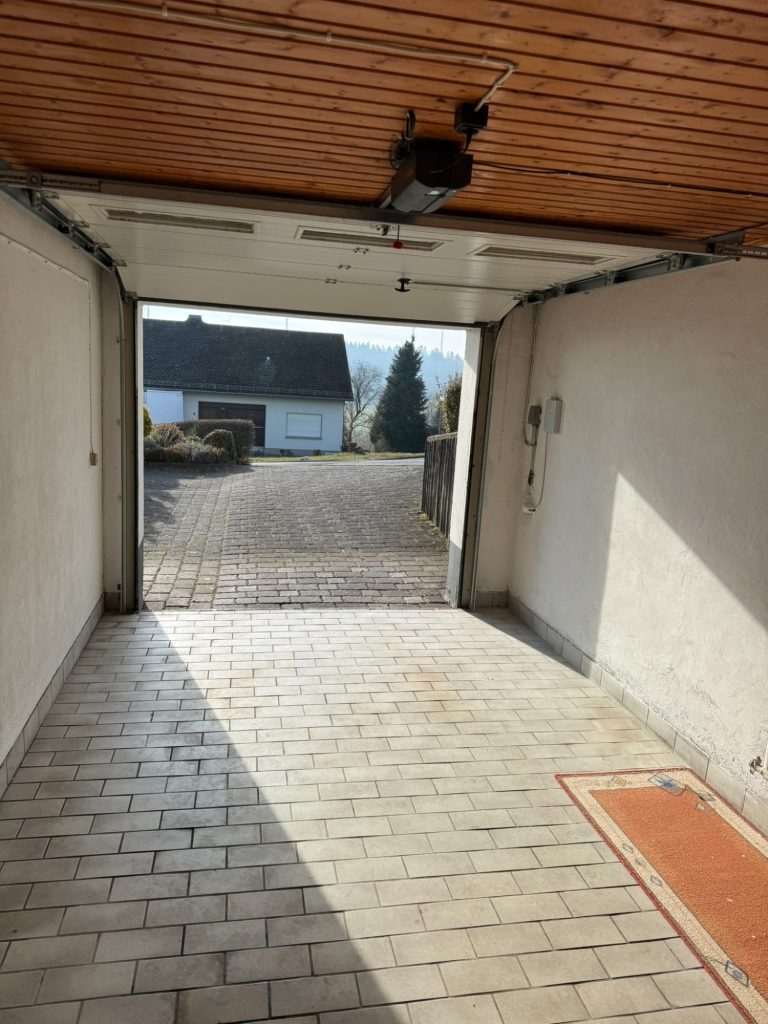 Die Garage ist komplett gefliest, verfügt über einen Heizkörper sowie ein Sektionaltor.
