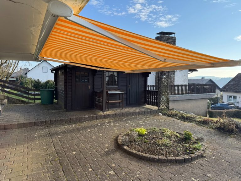 Am Balkon ist eine Markise montiert, welche als Sonnenschutz für die beiden Zimmer im Untergeschoss sowie die davor gepflasterte Freisitzfläche bietet.