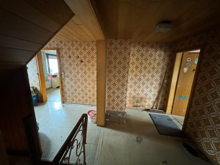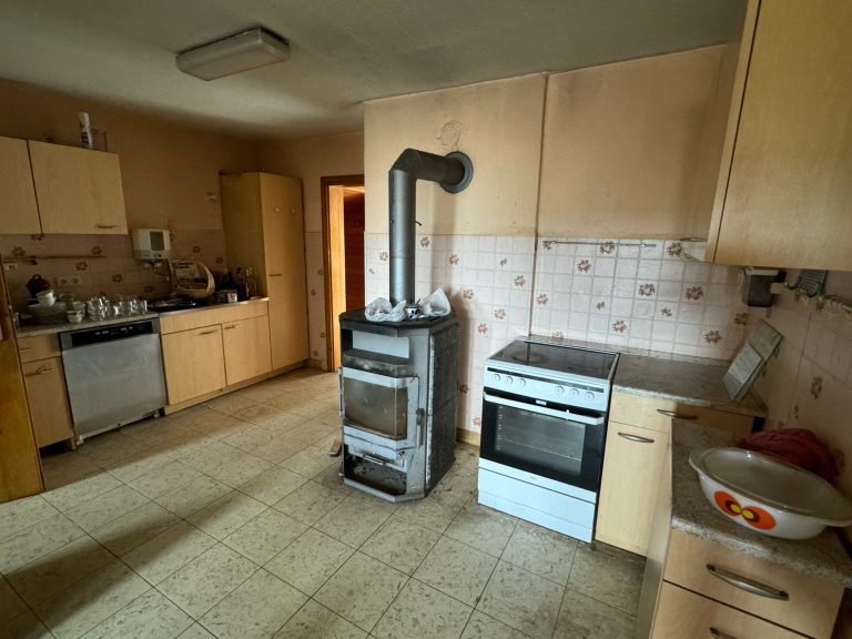 Im Erdgeschoss des Wohnhauses befinden sich drei Zimmer, eine Küche, ein Badezimmer, ein separates WC sowie ein Vorratsraum